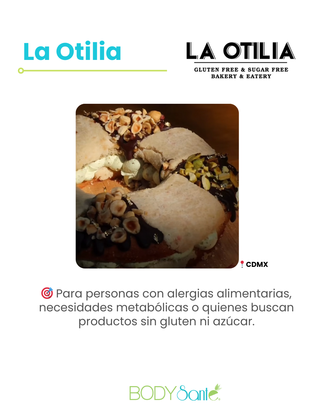 Una panadería conocida por su enfoque en productos libres de gluten y azúcar , ideales para personas con alergias alimentarias o necesidades metabólicas específicas.